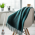 Luxury 100% Merino Wool Blanket With Fringe - Dark Green, 150X200 Cm, Super Soft And Warm